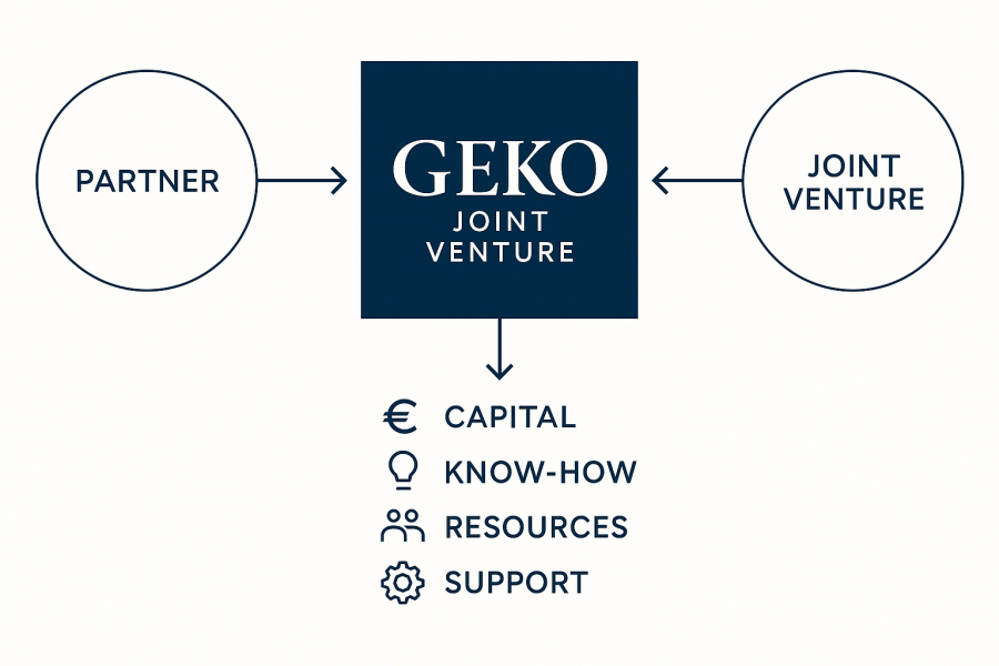 GEKO Business Services beteiligt sich nicht nur an bestehenden Unternehmen – wir schaffen gemeinsam mit etablierten Playern, Branchenexperten oder Start-ups neue Geschäftsmodelle in Form von Joint Ventures. Dabei verbinden wir Kapital, operatives Know-how und Marktzugang mit der Innovationskraft unserer Partner.
